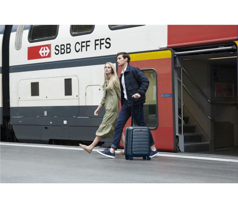 Здрав и перфектно преносим, Syntry Carry-On е идеалният куфар с прецизна маневреност. Компресираното предно отделение съхранява безопасно вашия 14-инчов лаптоп и 10-инчов таблет, докато бързият джоб предлага бърз достъп до важни предмети. Просторен и сигурен благодарение на кодовата ключалка и ципа за сигурност с допълнение USB зарядно устройство. Четири супер тихи двойни колела улесняват завиването