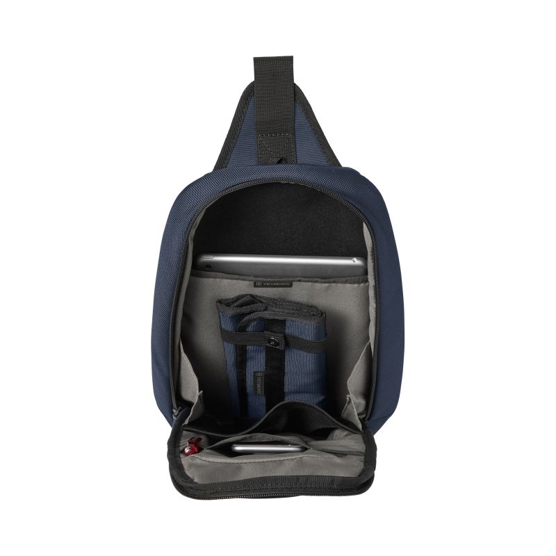 - Широка регулируема презрамка за носене през рамо или през кръста,комбинирана с джоб с цип и място за вашия нож Victorinox