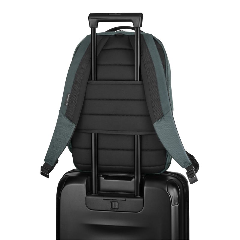 • Джоб на гърба за закачане на раницата върху дръжката на куфар при пътуване с много багаж