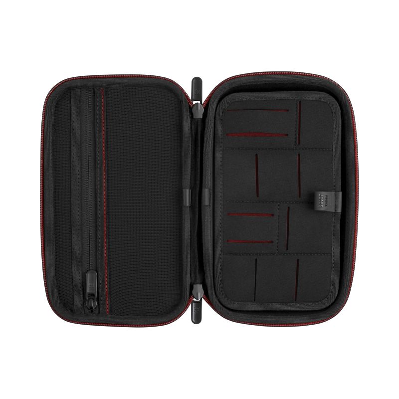 Техническата чанта Travel Essentials със здрава външна част и устойчива на надраскване вътрешност предпазва вашите технически ценности по време на пътуване.