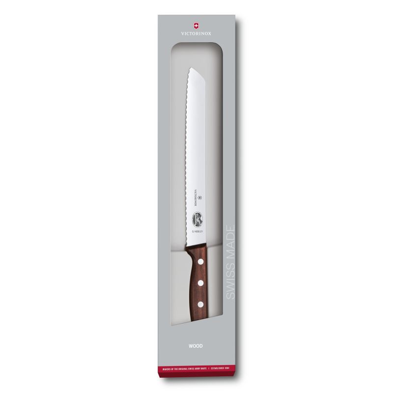 Швейцарски нож за хляб с вълнообразен ръб и висококачествена дървена дръжка.