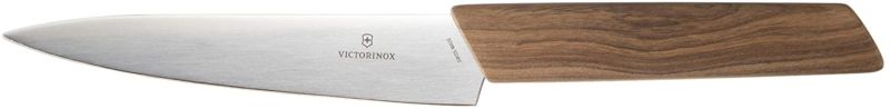 Никоя задача не е твърде тежка за този компактен, традиционен кухненски помощник. Този нож реже чисто и безпроблемно всички видове храни, а с тънкото си прецизно острие, той е подходящ и за приложения като белене и отстраняване на дръжки или сърцевина на плодовее. Подобно на всички ножове в колекцията Swiss Modern, той има дръжка със специална ергономична форма, изработена орехово дърво. Топла и естествена, дръжката е напълно уникална и е с геометрична форма, за да придаде гладко и съвременно усещане. Елегантността, функционалността и високата производителност се съчетават в този красив, издръжлив и непреходен кухненски инструмент.