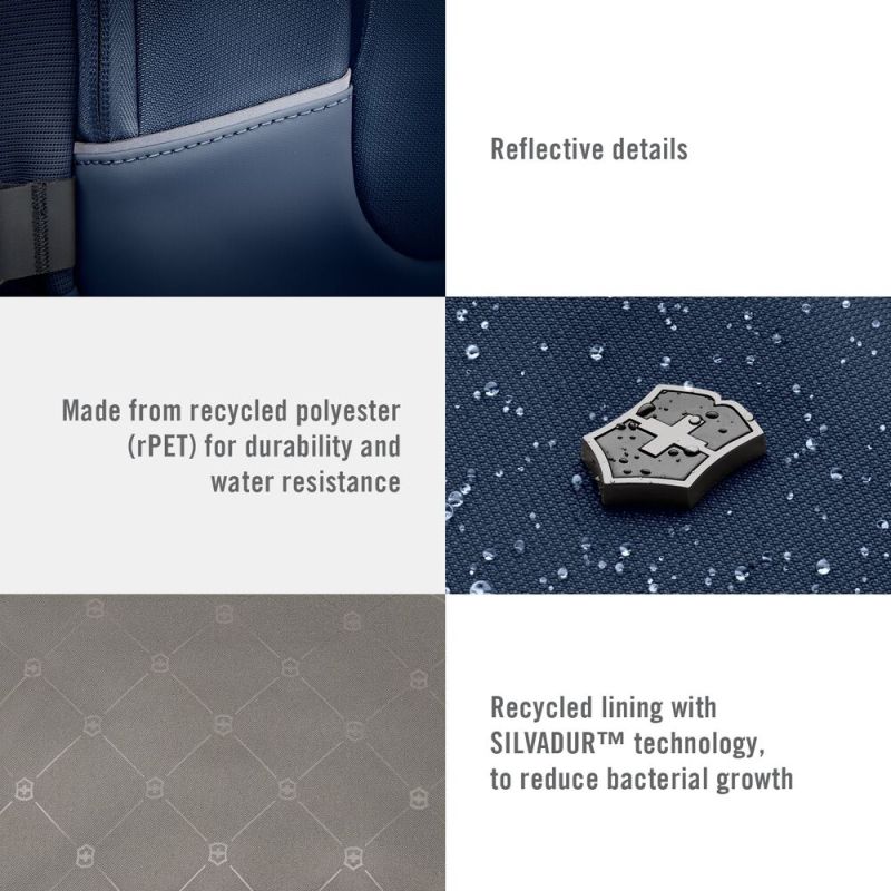 - Раницата Altmont Modern City е изработена от рециклиран полиестер (rPET), алтернатива на конвенционалния полиестер, лесна за почистване и устойчива на износване външна част.