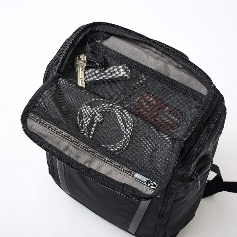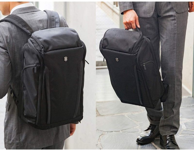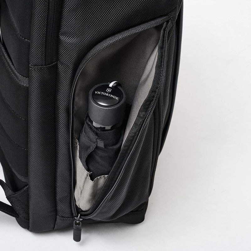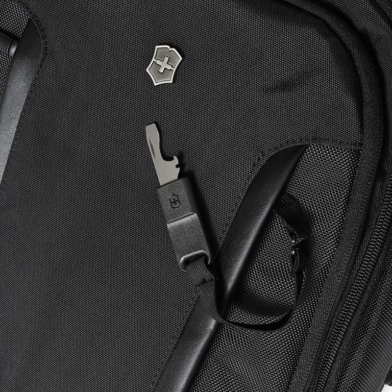- Два вертикални джоба с цип отпред, в единия от които има характерния за Victorinox мулти-инструмент (отварачка за бутилки, отвертка, стриппер) от швейцарския армейския нож